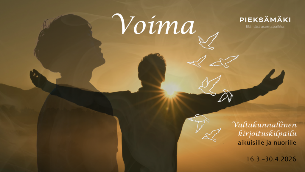 VOIMA. Voima on ääntä ja vimmaa tai hiljaista kestävyyttä. Se on vallan kahva tai se pieni kipinä, joka saa jatkamaan, kun mikään muu ei auta. Voima rakentaa maailmoja – tai murentaa ne. Onko voima sinulle vastarintaa, lempeyttä, sähköä vai kenties jotain, mikä puuttuu silloin kun sitä eniten tarvittaisiin?