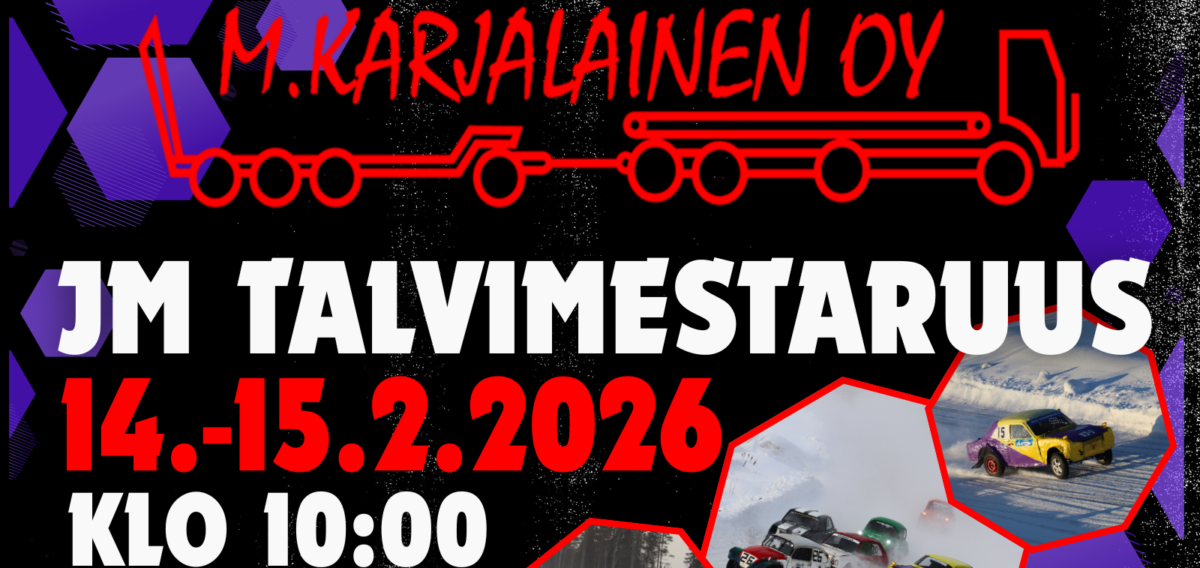 Kilpailu M. Karjalainen Oy JM Talvimestaruus 14.-15.2.2026 alkaa klo 10:00 kumpanakin päivänä. Ajettavia luokkia on yhteensä viisi ja ajojärjestys lauantaina on nuoret, naiset ja etuvetokardaaniluokka sekä sunnuntaina yleinen ja seniorit. Päivät huipentuvat palkintojenjakoon.