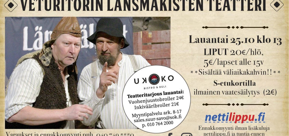 UKKO & Bistro Deli teatteritarjous lauantaille 🙂