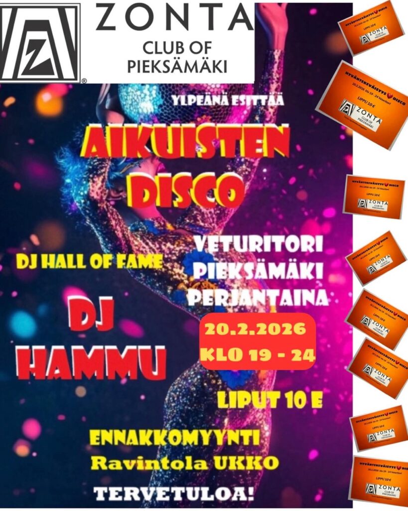 Zonta Club Of Pieksämäki ylpeänä esittää: Aikuisten disco